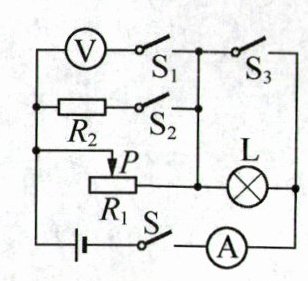 (3)当闭合S,断开$S_1、$$S_2、$$S_3,$滑动变阻器滑片P移至中点时,小灯泡恰好能正常发光,求滑动变阻器的最大阻值.