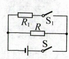 (2)同时闭合开关S、$S_1,$若通过干路的电流为1.6A,求通过电阻$R_1$的电流和电阻$R_1$的阻值.