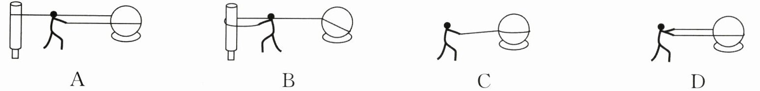 4.(2024·江苏盐城)下列挪动球形石墩的方法中,最省力的是( )