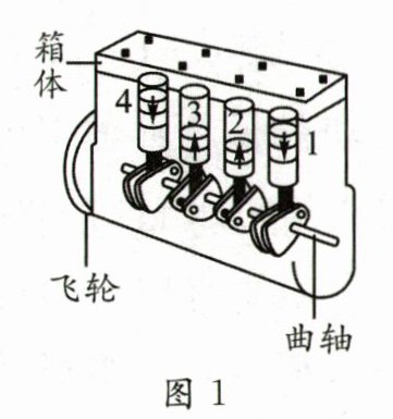 工程师还制造了四缸四冲程汽油机,制造时通过连杆把四缸四冲程汽油机的活塞连在一根曲轴上,四缸四冲程汽油机分为两种:一种是同步汽油机,四个汽缸在同一时间都做相同工作;一种是异步汽油机,各汽缸的做功冲程错开,如图1所示,四个汽缸依次标注为1、2、3、4,在飞轮转动的每半周里,都有一个汽缸在做功,其他三个汽缸分别做吸气、压缩和排气工作.
