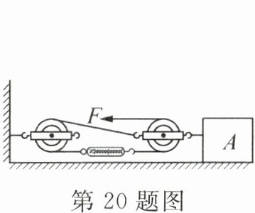 20.如图所示,在拉力F的作用下,物体A以0.01m/s的速度匀速直线运动了10s.物体A受到的摩擦力为4.2N,弹簧测力计示数为2N.则绳子自由端移动的距离为______m,拉力F的功率为______W,滑轮组的机械效率为______.(不计绳、弹簧测力计和滑轮重)