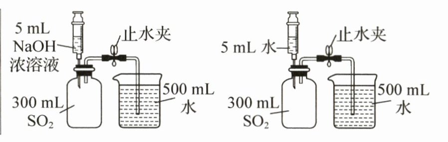 【迁移应用$】SO_2$气体排放到空气中会造成环境问题。同学们查阅资料,并利用如图所示装置和用品进行实验,来比较氢氧化钠浓溶液、水吸收$SO_2$的效果。