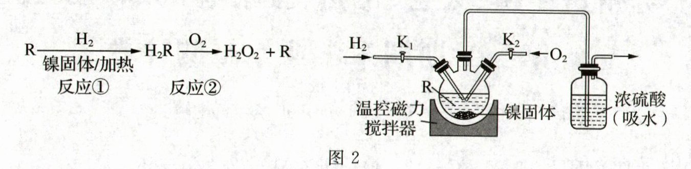 。Ⅱ. 模拟工业制备$ H_2O_2。$反应过程分两步进行,流程和部分装置如图 2 所示。
