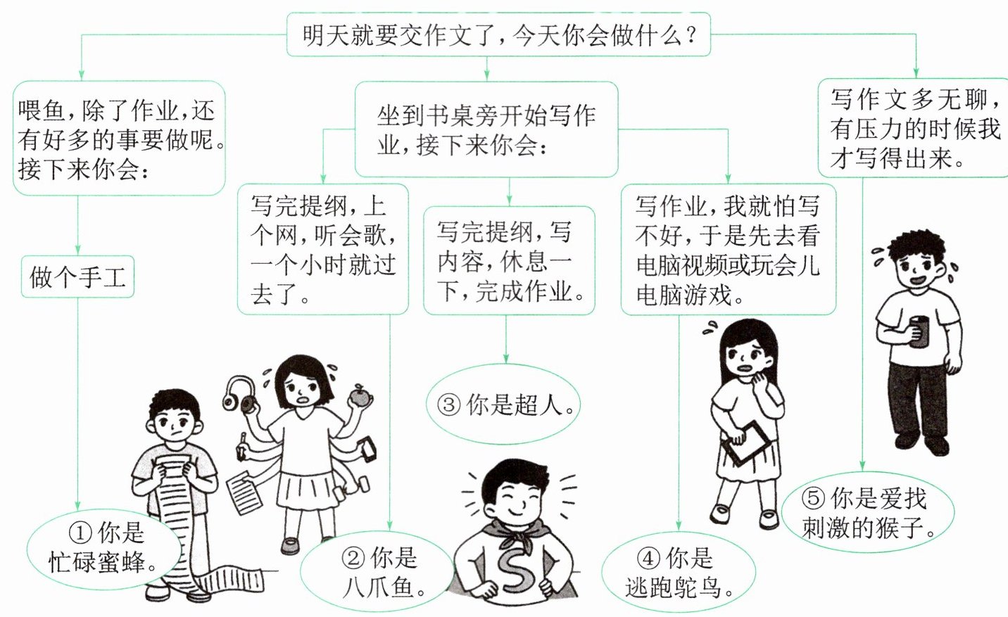 [材料二]人们明确知道自己的任务和时间节点却迟迟不愿行动,在拖延的一小段时间里仿佛得到了一种逃避惩罚的快乐,却又有着必须面对现实的痛苦,从而导致在生活和学习中总是慢半拍。这样的心理状态就是"拖延心理"。拖延心理不但降低了我们的学习效率,还使得我们在无形中养成了做事拖拉的坏习惯。