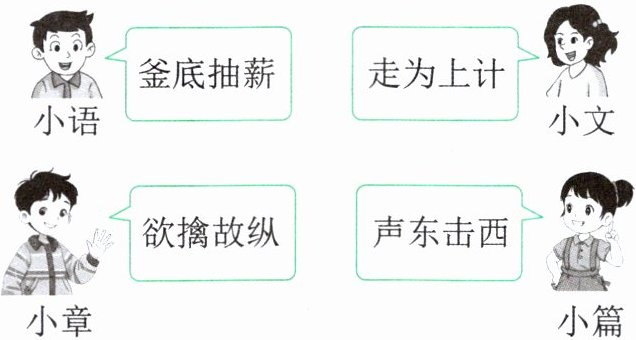 5. 示例:我认为小章同学的看法与猫的计策更接近。(1分)“欲擒故纵”的意思是为了要捉住他,故意先放开他,使他放松戒备,泛指为了更好地控制,故意先放松一步。(1分)这与猫先躲避老鼠,等到老鼠疲乏懈怠的时候再一举抓住它的做法类似。(2分)