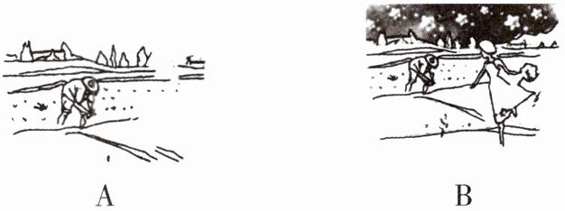 12. 示例:我选择图B。(1分)因为图B中的农夫、女儿、田埂等元素与文章主要内容相吻合。其中,农民弯腰劳作这个动作正体现了他纯朴勤劳的特点;和城里人对作物的冷漠相比,农民热爱自己的田野和劳动果实,认为它们才是最让自己有尊严的存在,体现了农民对淳朴、踏实的乡村生活坚定的热爱。(2分)而图中女儿自由地奔跑,正是农民尊重女儿的选择,支持下一代去城市追寻理想的表现,突出农民开明的父亲形象。(1分)远处的星空对应文中结尾处的描写,也从侧面表达了作者对农民这种形象的赞美。(1分)