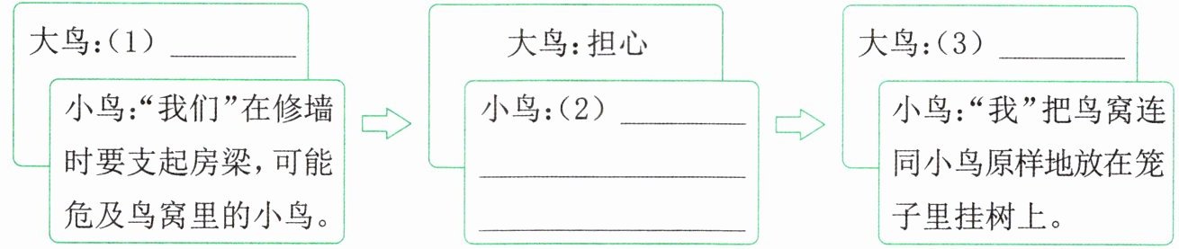 12. ★(核心素养·思维能力)文中大鸟的心理情感随着小鸟的处境不断变化。请根据文章内容填写下面的脉络图,用来明确朗读基调。(3 分)
