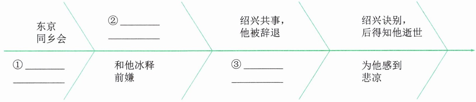 东京同乡会 ②______ 绍兴共事,他被辞退 绍兴诀别,后得知他逝世