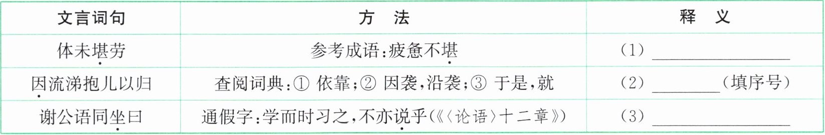 2. [词语积累]阅读文言文,根据提示完成下表。(3 分)