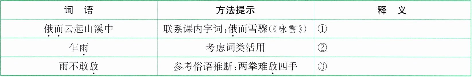 |俄而云起山溪中|联系课内字词:俄而雪骤(《咏雪》)|①|