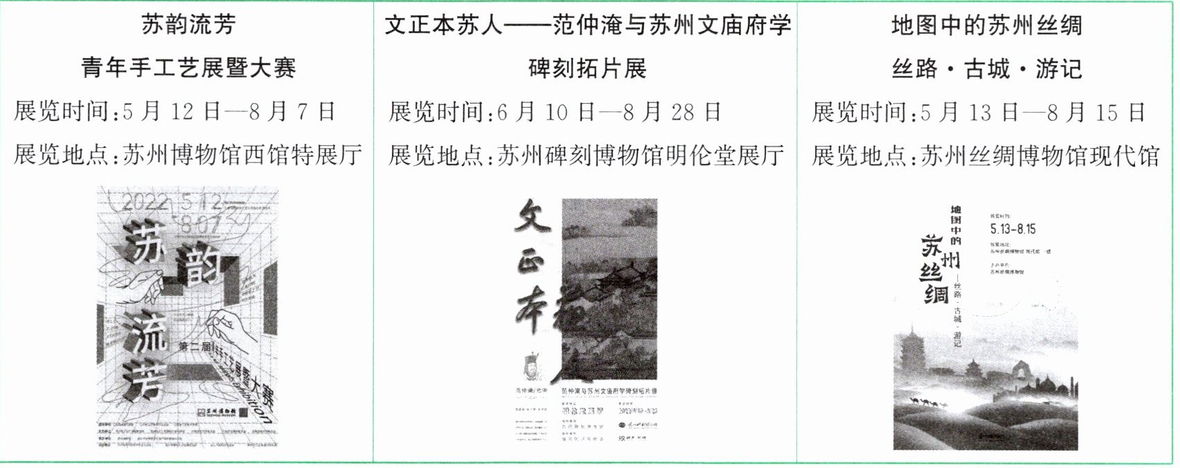 |展览时间:5 月 12 日—8 月 7 日展览地点:苏州博物馆西馆特展厅|展览时间:6 月 10 日—8 月 28 日展览地点:苏州碑刻博物馆明伦堂展厅|展览时间:5 月 13 日—8 月 15 日展览地点:苏州丝绸博物馆现代馆|