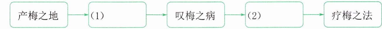 A[产梅之地] --> B[(1)] --> C[叹梅之病] --> D[(2)] --> E[疗梅之法]