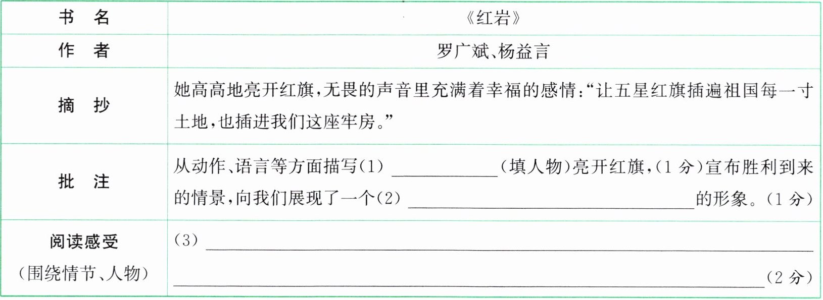15. 请帮助小文完成《红岩》阅读积累卡。(4 分)