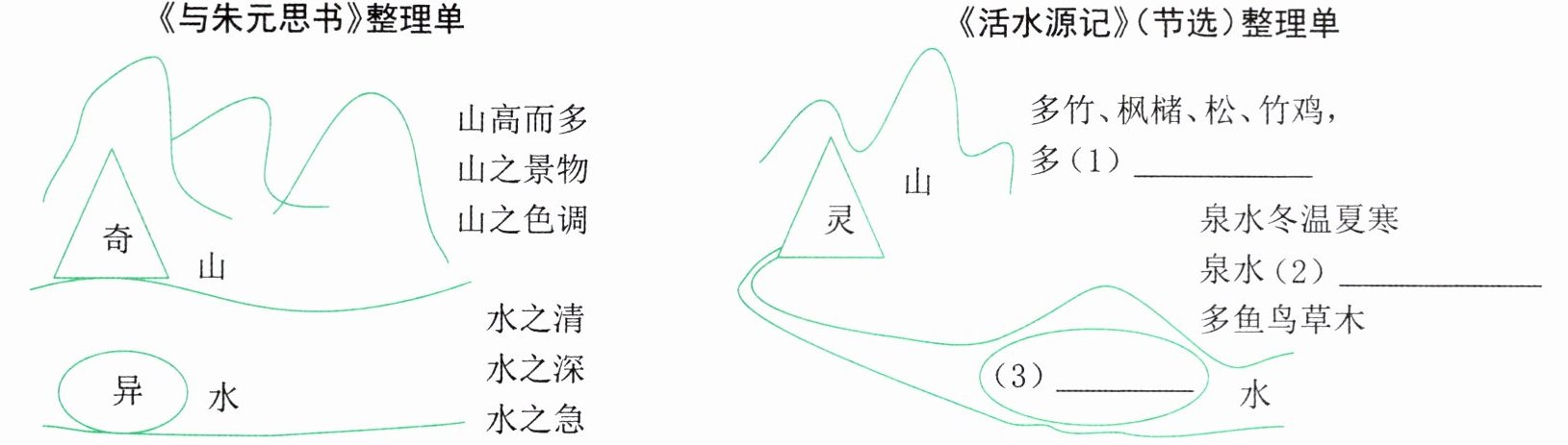 4. *参照《与朱元思书》整理单,结合《活水源记》(节选)的具体内容,完成篇章整理任务。(3 分)