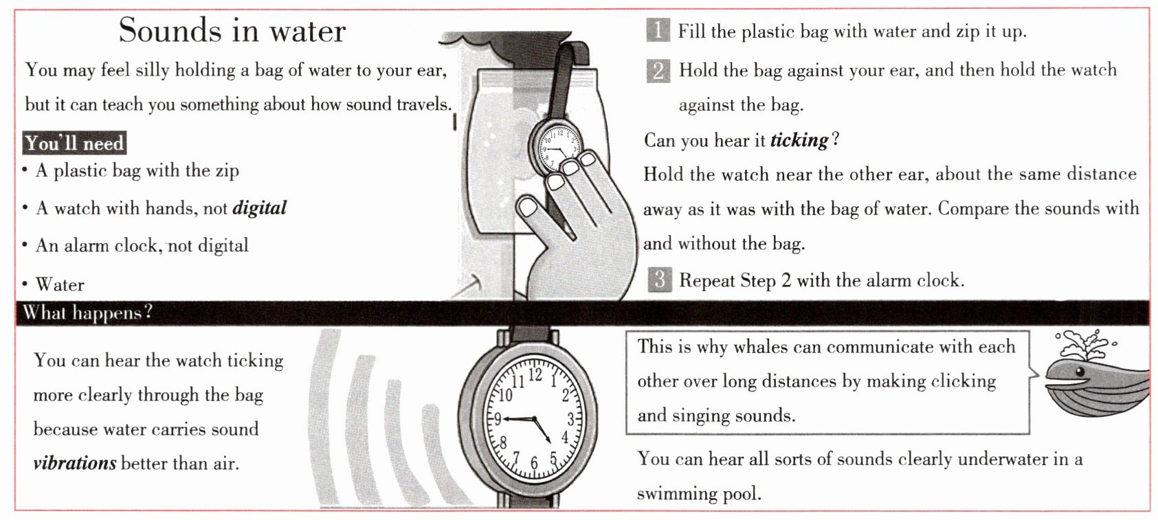 )1. What is the result of the experiment?A. Water carries sound vibrations as well as air.