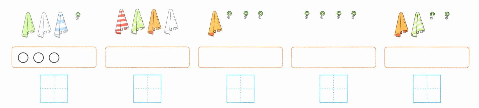 1. 墙上分别有几条毛巾?画一画,写一写。
