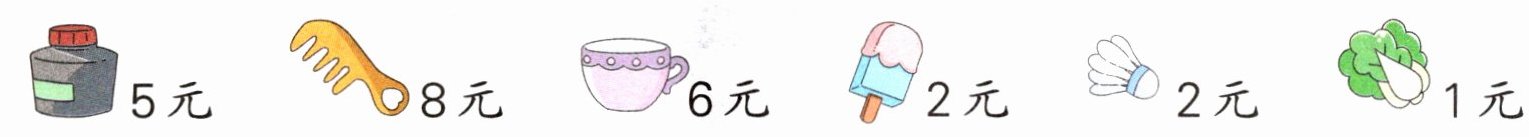 4.(名校期末真题)妈妈买了一些物品用了9元钱,她可能买了哪些物品?用算式表示。