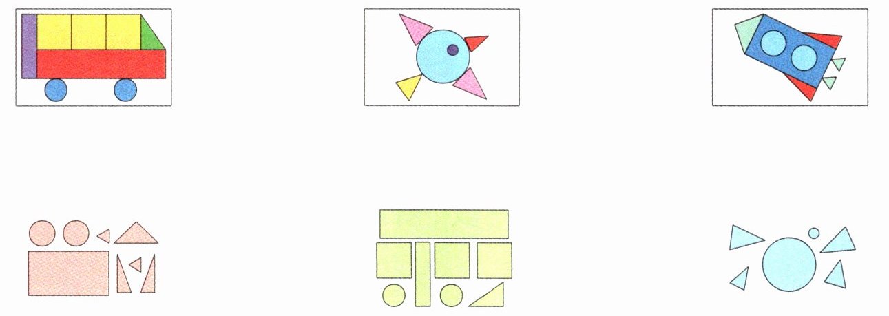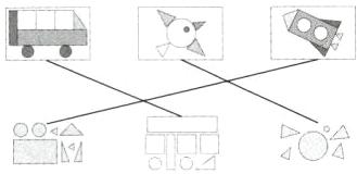 1. [新趋势·乐考活动] 闯 关 要 求:用 彩 纸 拼 出 卡 片 上 展 示 的 图。(连一连)