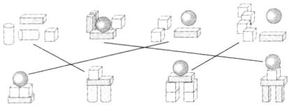 2.摆一摆,连一连。