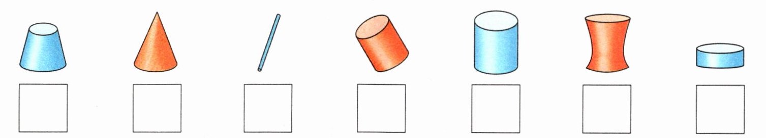 2. 下面的图形中,哪些是圆柱?在下面画“√”。