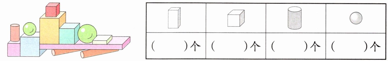 1. 从左边数,第( )个是球,第( )个和第( )个是正方体。