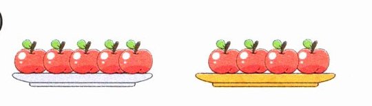 右边一盘再放几个苹果就和左边一盘的苹果同样多?