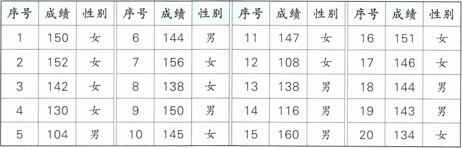 )名男生成绩优秀。(3)序号为20的同学的成绩在女生中处于第(