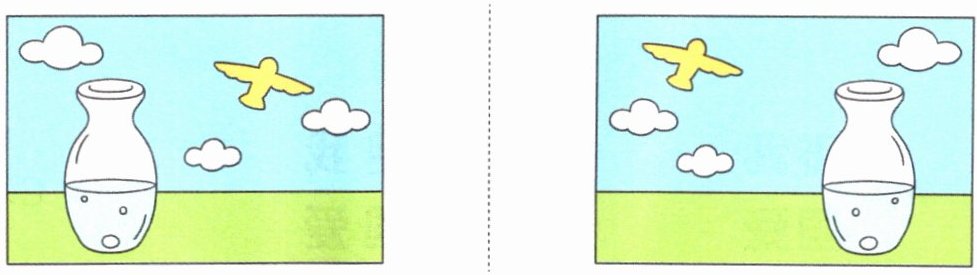 5.李叔叔说:“墙上两幅装饰画沿虚线对折能完全重合。”萌萌利用刚学的轴对称知识发现了两处错误,你知道是哪两处吗?在右边图上圈一圈。