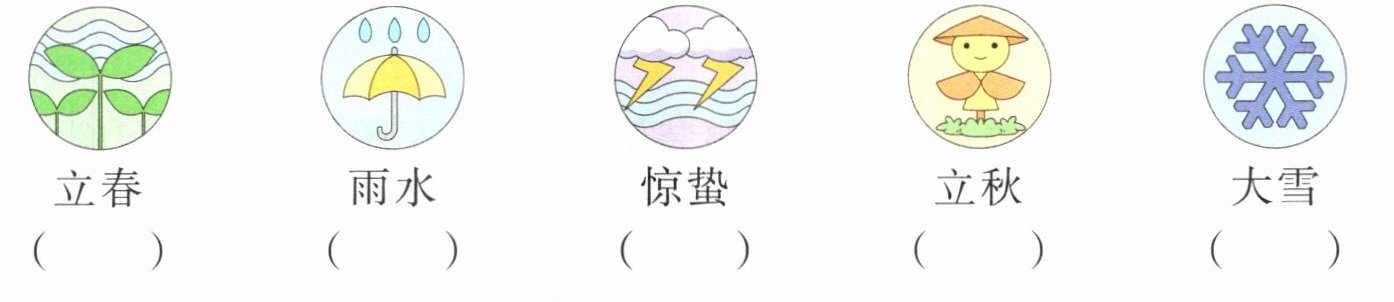 1.[新情境·传统文化]下面的五幅作品,分别代表二十四节气中的“立春”“雨水”“惊蛰”“立秋”“大雪”,是轴对称图形的画“√”。