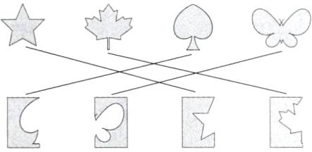 2.[教材改编]下面的图案各是从哪张纸上剪下来的?连一连。