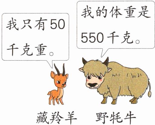 550÷50=11 答:野牦牛的体重是藏羚羊的11倍。