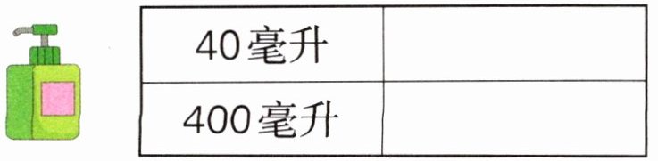 3. 下面容器的容量各是多少毫升?在合适答案的右边画“√”。