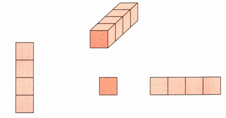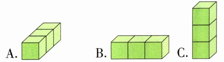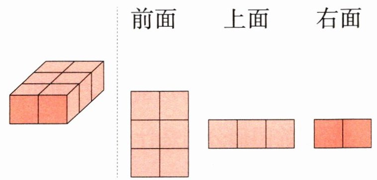 4. 用4个同样大的正方体摆成一个长方体,从前面看到的是,
