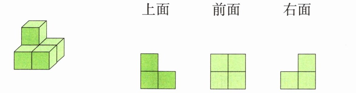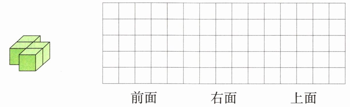3. 从前面、右面和上面看到的图形各是什么?在方格纸上画一画。
