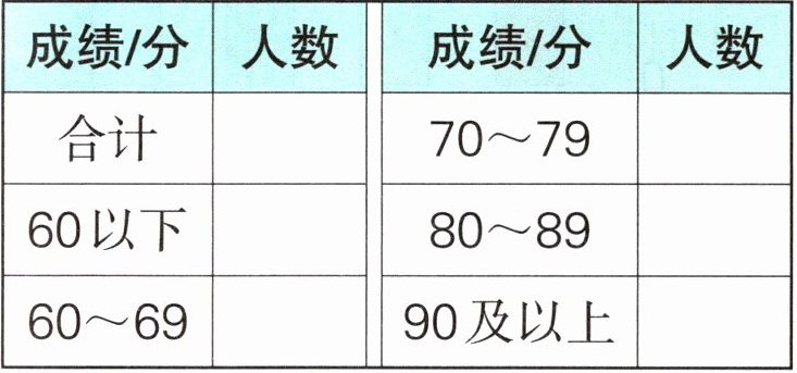 (1)请分段整理上面的数据,把结果填入下面的统计表中。