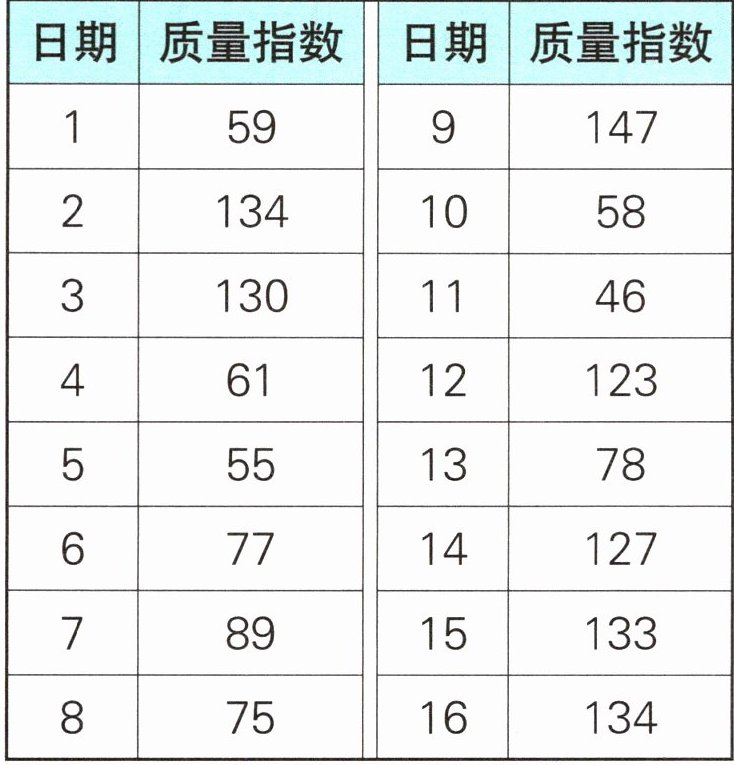 1. 小兰连续记录了16天的空气质量指数,如下表。