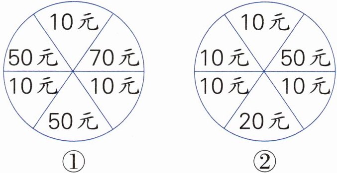 (1)转①号转盘。因为在①号转盘中,50元代金券的数量更多。(理由合理即可)
