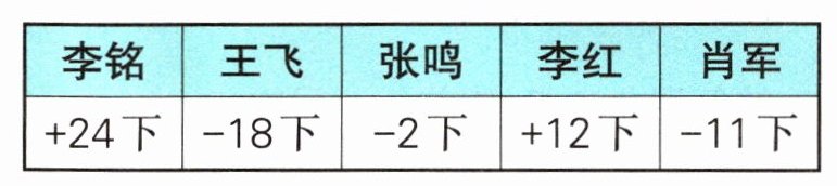 5. 下表是五(2)班跳绳活动中一组同学的成绩,以每分钟跳绳100下为标准,高于100下的记作正数,低于100下的记作负数。