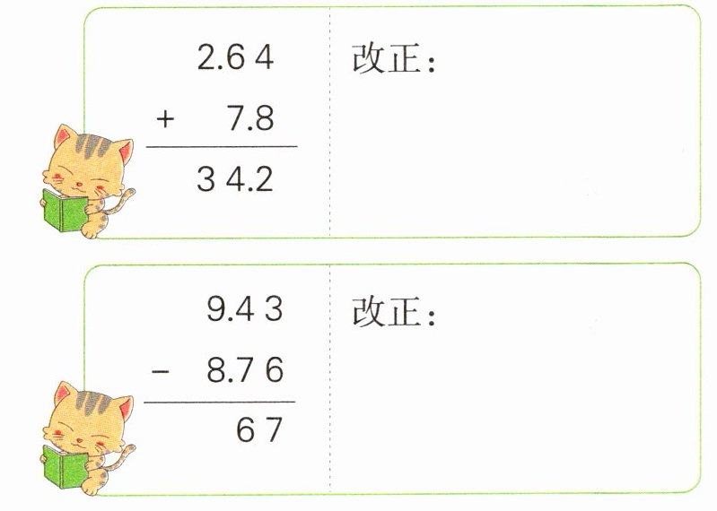 7. (名校期末真题)坤坤在竖式计算14.56减去一个一位小数时,错把数的末位对齐,结果得到13.39,这个一位小数是(