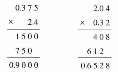 0.375×2.4=0.9 2.04×0.32=0.6528