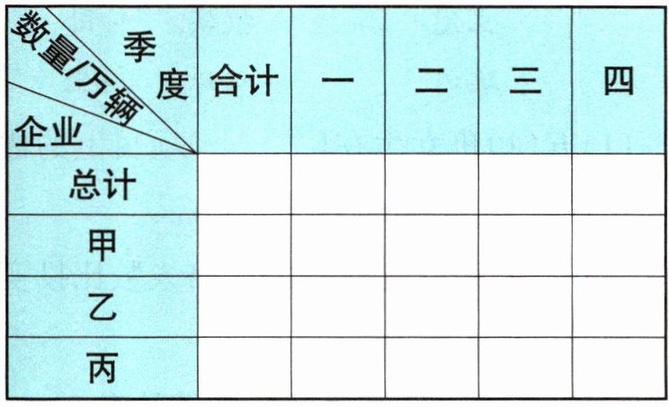 丙企业:第一季度2万辆;第二季度2.8万辆;第三季度1.9万辆;第四季度2.7万辆。