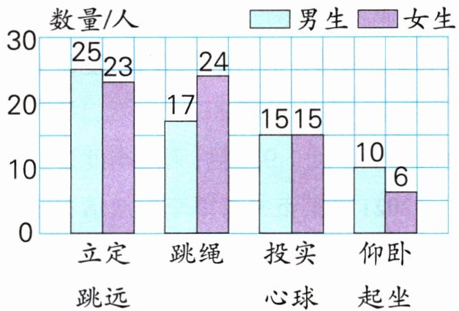 | 数量/人 | 项目 | 立定跳远 | 跳绳 | 投实心球 | 仰卧起坐 |