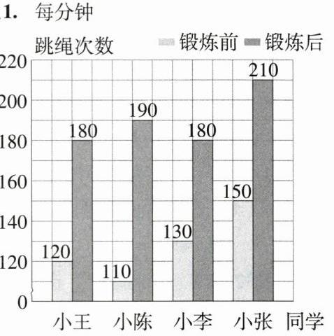 |锻炼后平均每分钟跳绳次数|180|190|180|210|