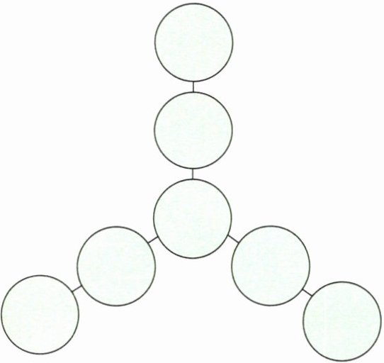 5. 把$\frac {3}{2}$、$\frac {7}{8}$、$\frac {7}{9}$、$\frac {7}{10}$、$\frac {15}{8}$、$\frac {27}{16}$、$\frac {16}{21}$这7个分数填入○中,使每条线上的3个数的乘积都是1。