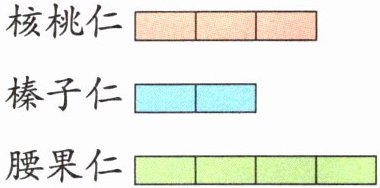 2. 一种混合型坚果是由核桃仁、榛子仁和腰果仁混合而成的,这三种坚果的质量分配如下图。