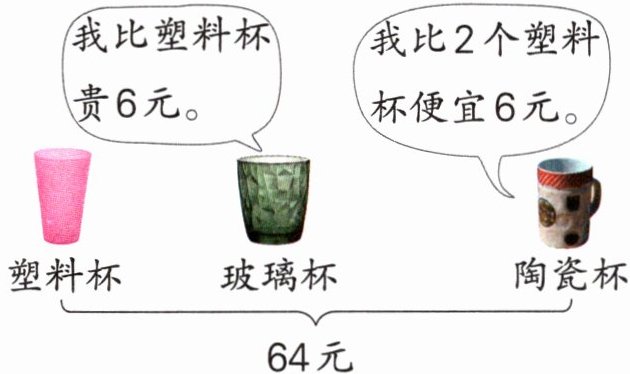 瓷杯比2个塑料杯便宜6元”,且一个