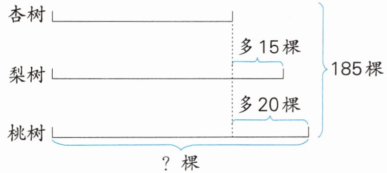 185-15-20=150(棵) 150÷3+20=70(棵)