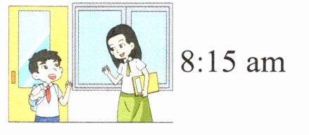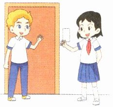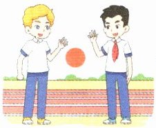 六、看图,根据示例,写一写图中的人物是怎样打招呼/作别的。