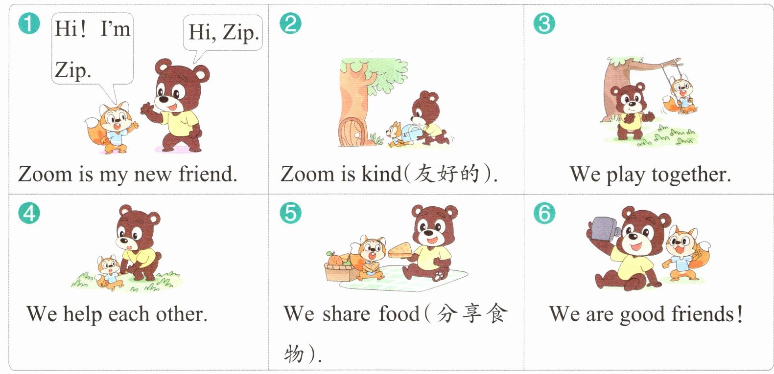 示例: My name is He Chao. I'm in Class 1. This is Chen Fan. She's my friend. She's in Class 1 too.