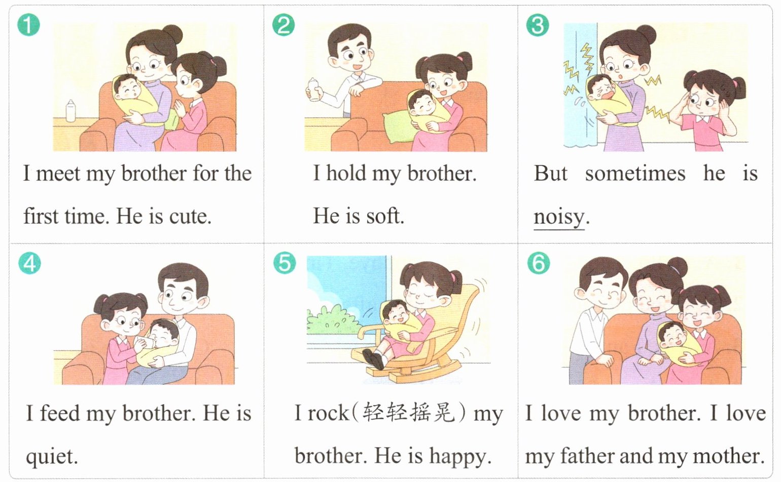 词汇积累 for the first time 第一次 hold /həʊld/ 抱住 soft /sɒft/柔软的 sometimes /'sʌmtaɪmz/有时 quiet /'kwaɪət/ 安静的